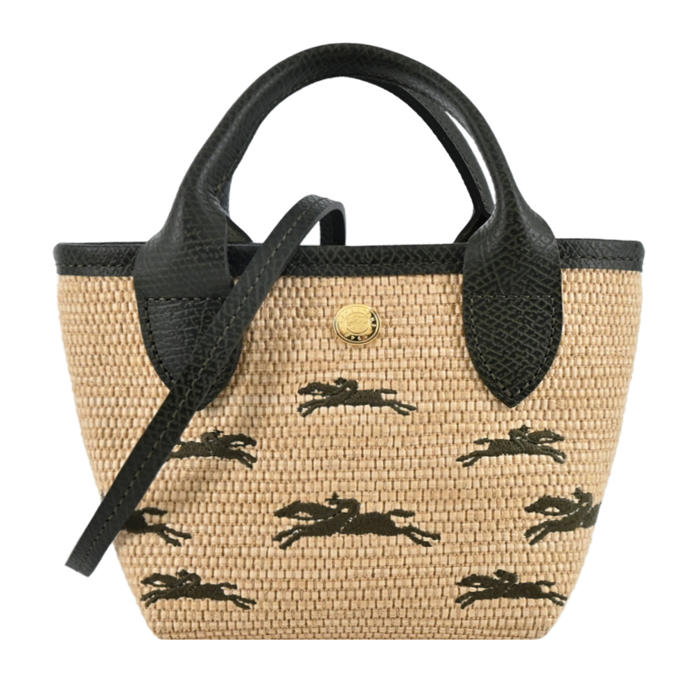LONGCHAMP LE PANIER PLIAGE系列編織奔馬兩用包(迷你 卡其綠) 平行輸入