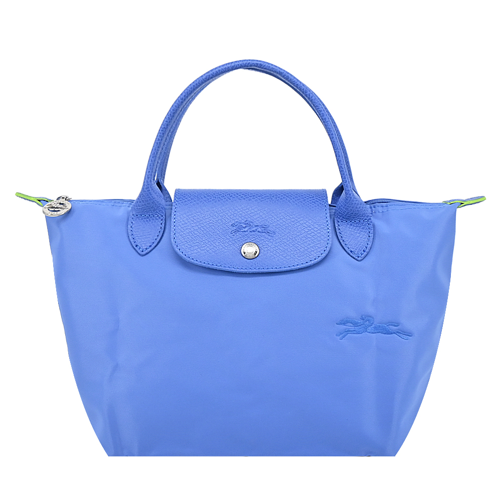 商品名 / | LONGCHAMP LE PLIAGE GREEN系列刺繡短把再生尼龍摺疊水餃包(小 失車菊藍) 平行輸入 |