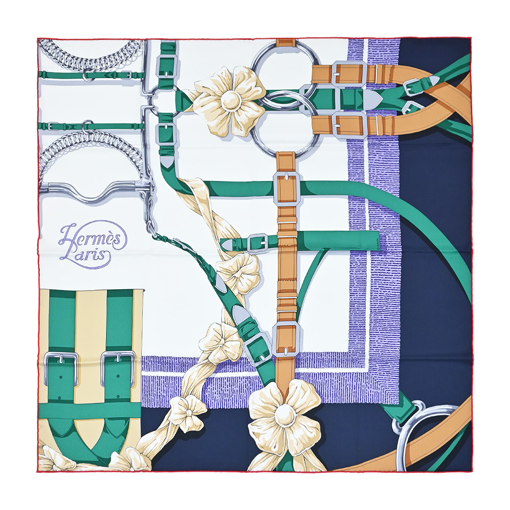 商品名 / | Hermes 愛馬仕 Grand Manege Detail 70 cm手工捲邊斜紋真絲方巾(綠 藍) 平行輸入 |