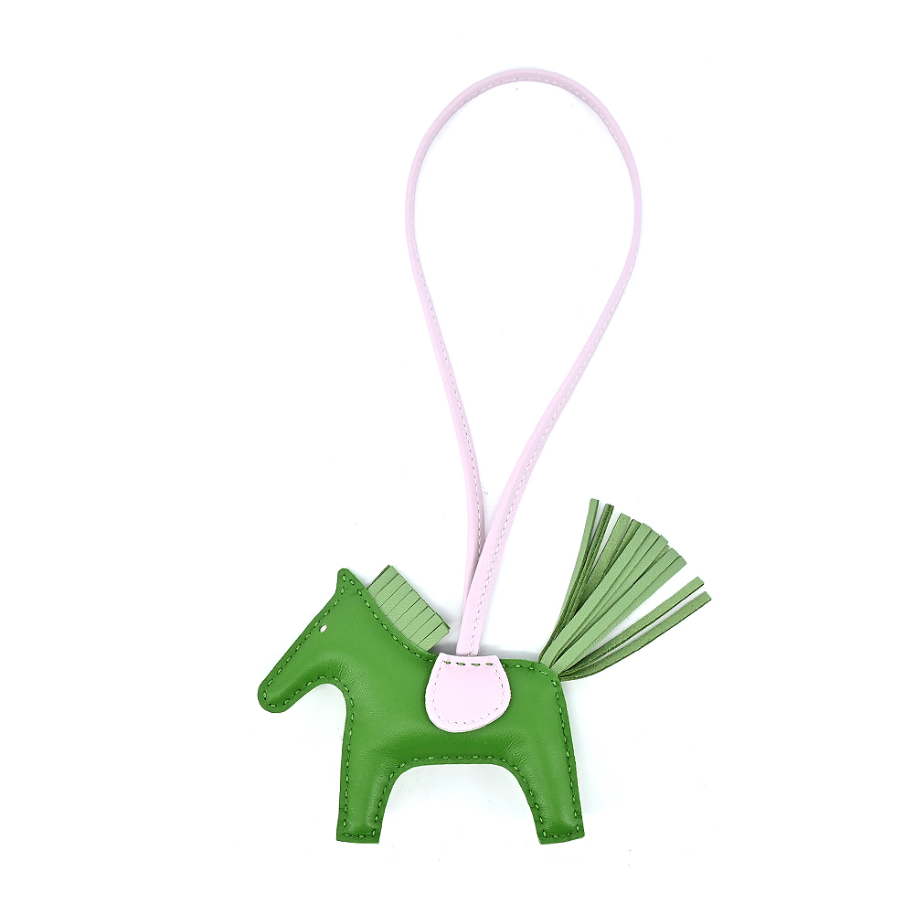 Hermes 愛馬仕 Rodeo小羊皮撞色手工馬兒吊飾(小 綠 粉) 平行輸入