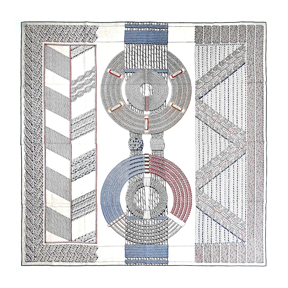 商品名 / | Hermes 愛馬仕 Dressage Tressage 140 cm手工捲邊喀什米爾與真絲混紡方巾(自然 藍 胭脂) 平行輸入 |
