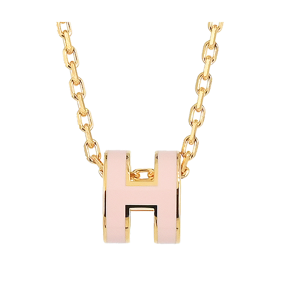 Hermes 愛馬仕 Mini Pop 經典H立體橢圓簍空項鍊(85粉 金) 平行輸入