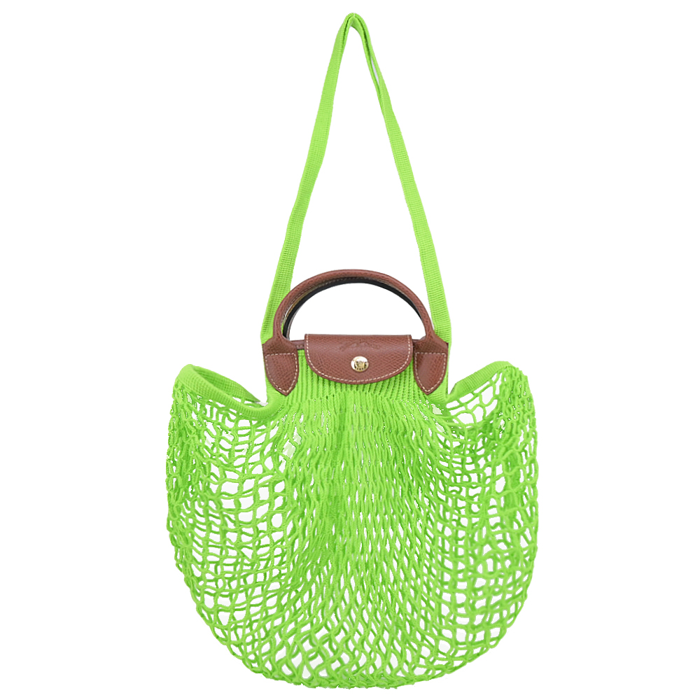 LONGCHAMP LE PLIAGE FILET系列網狀棉質手提 肩背兩用包(大 亮綠) 平行輸入