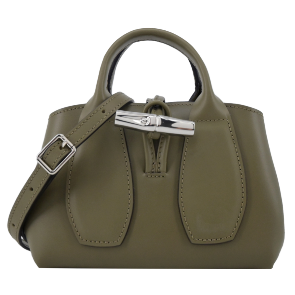 商品名 / | LONGCHAMP LE ROSEAU系列金屬竹節牛皮手提 斜背兩用包(迷你 卡其綠) 平行輸入 |