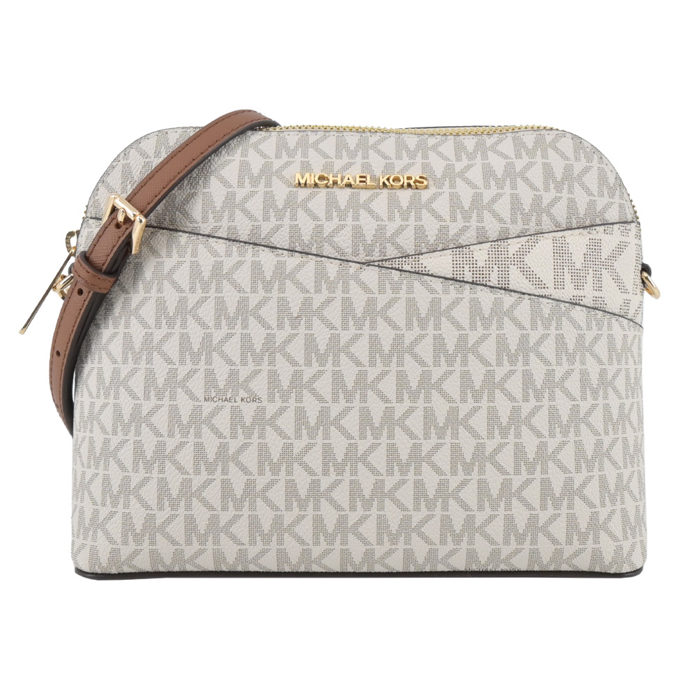 | 商品名 / | MICHAEL KORS JET SET新版交叉滿版PVC斜背貝殼包-米白 棕 平行輸入 |