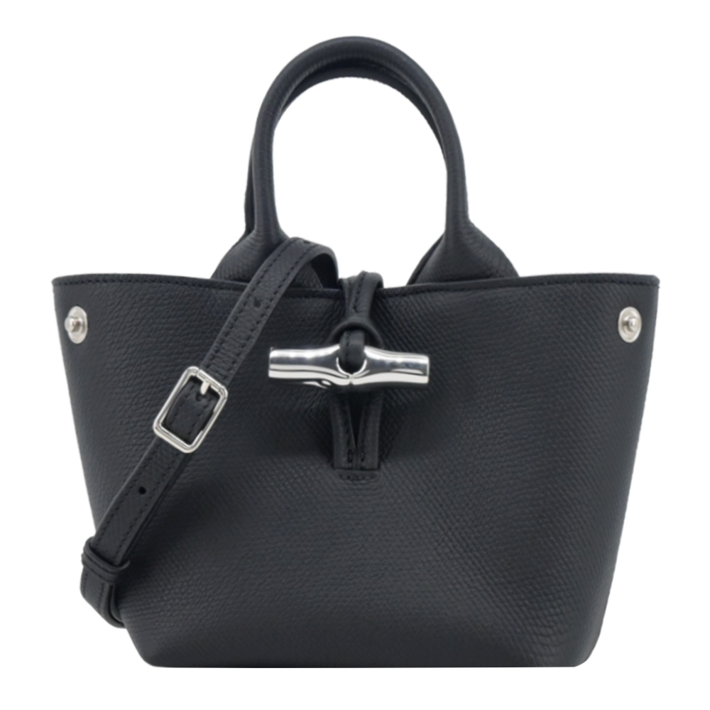 | 商品名 / | LONGCHAMP LE ROSEAU系列金屬竹節粒面牛皮手提 斜背兩用包(迷你 黑) 平行輸入 |