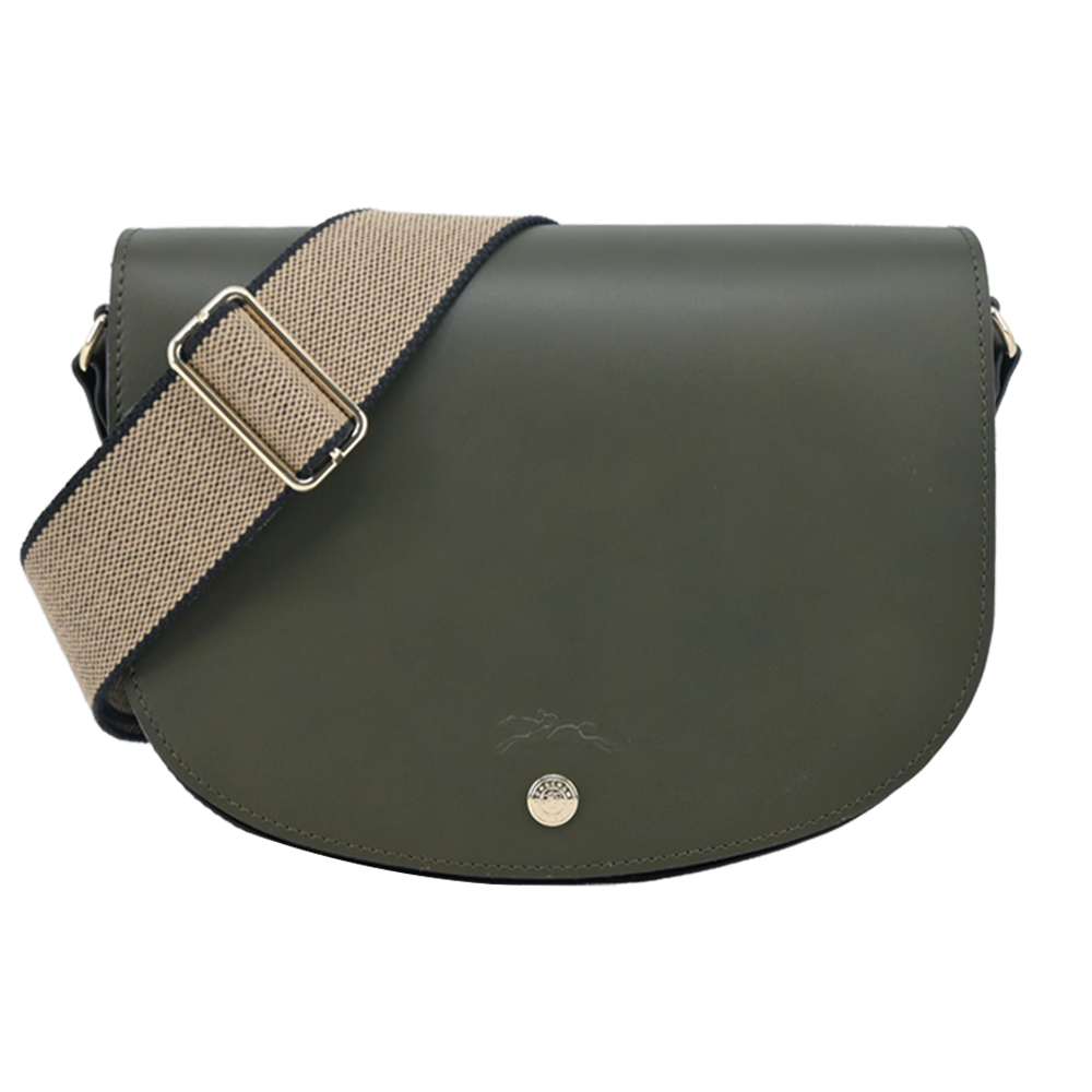 LONGCHAMP ÉPURE系列滑面牛皮半月型斜背包(中 卡其綠) 平行輸入