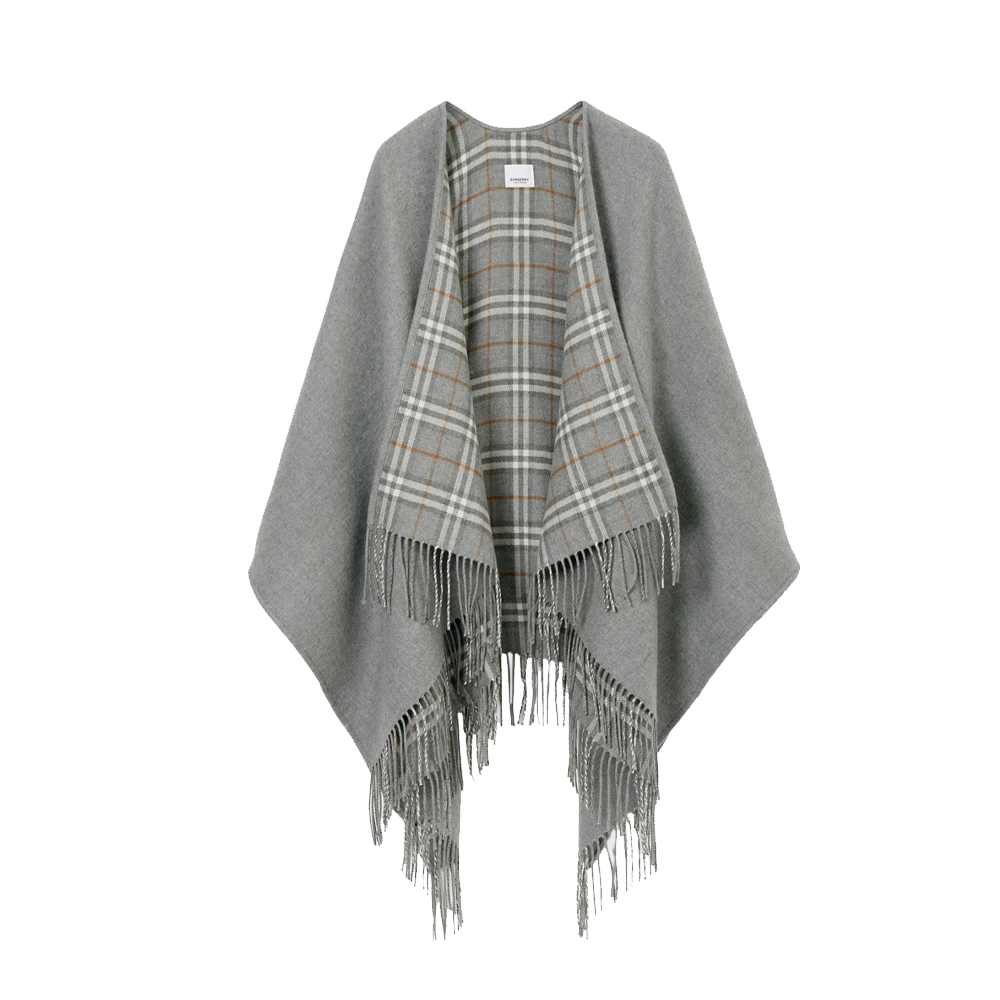 商品名 / | BURBERRY 經典格紋雙面羊毛斗篷 平行輸入 灰色 |