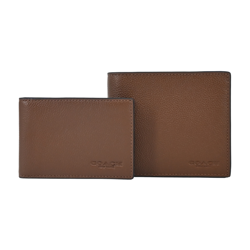 | 商品名 / | COACH 素面皮革男短夾附ID卡夾 淺咖 平行輸入 |