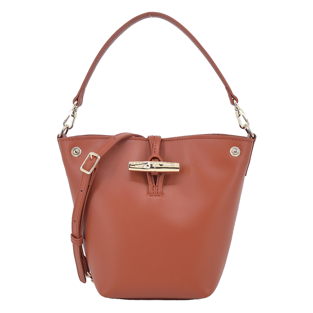 LONGCHAMP LE ROSEAU系列金屬竹節滑面小牛皮兩用水桶包(迷你 樹皮紅) 平行輸入