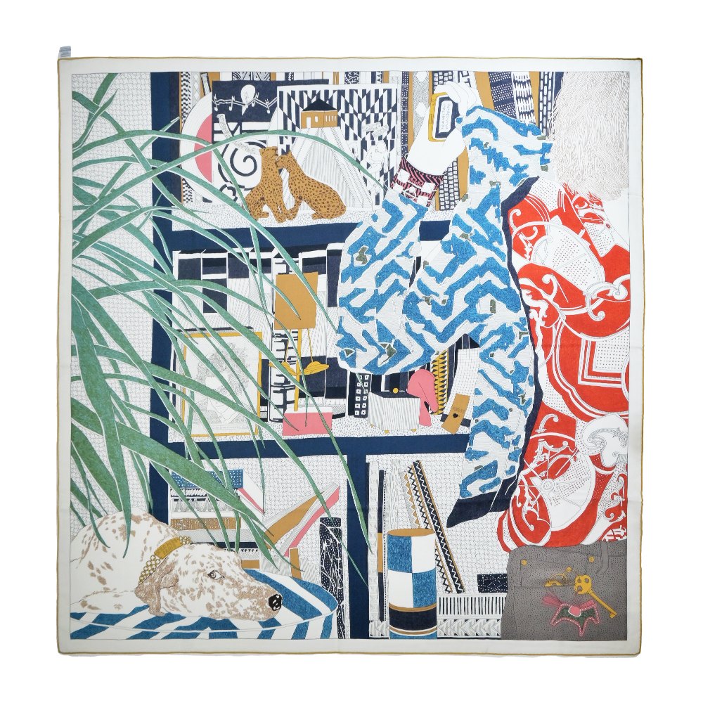 商品名 / | Hermes 愛馬仕 Rendez-Vous Chez 140手工捲邊羊絨真絲披肩(藍色 綠色 紅色) 平行輸入 |