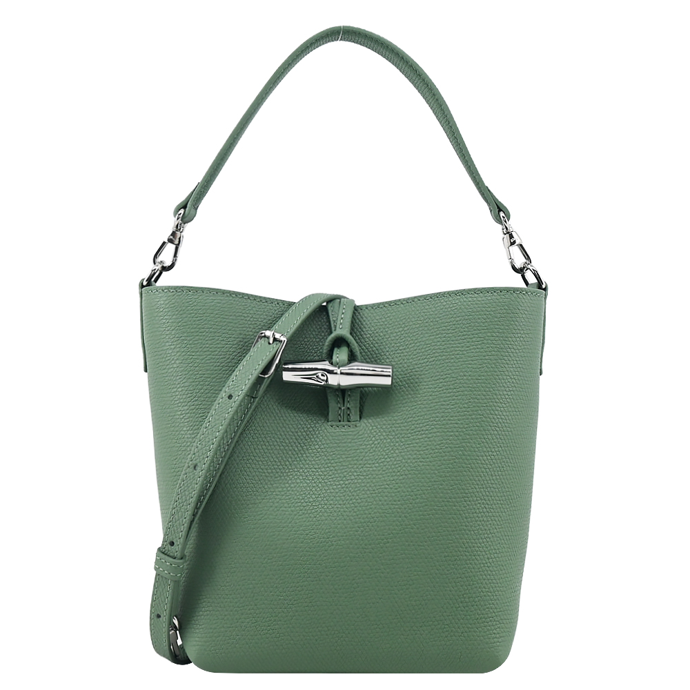 | 商品名 / | LONGCHAMP LE ROSEAU系列金屬竹節粒面牛皮兩用水桶包(迷你 奧勒岡綠) 平行輸入 |