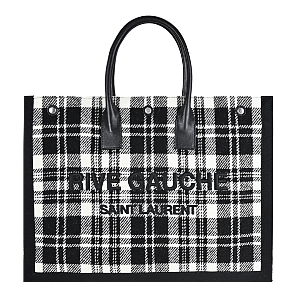 YSL RIVE GAUCHE 羊毛蘇格蘭紋縫線LOGO托特包(黑白) 平行輸入