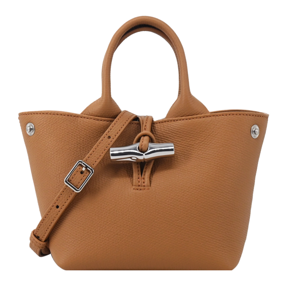 | 商品名 / | LONGCHAMP LE ROSEAU系列金屬竹節粒面牛皮手提 斜背兩用包(迷你 核桃) 平行輸入 |