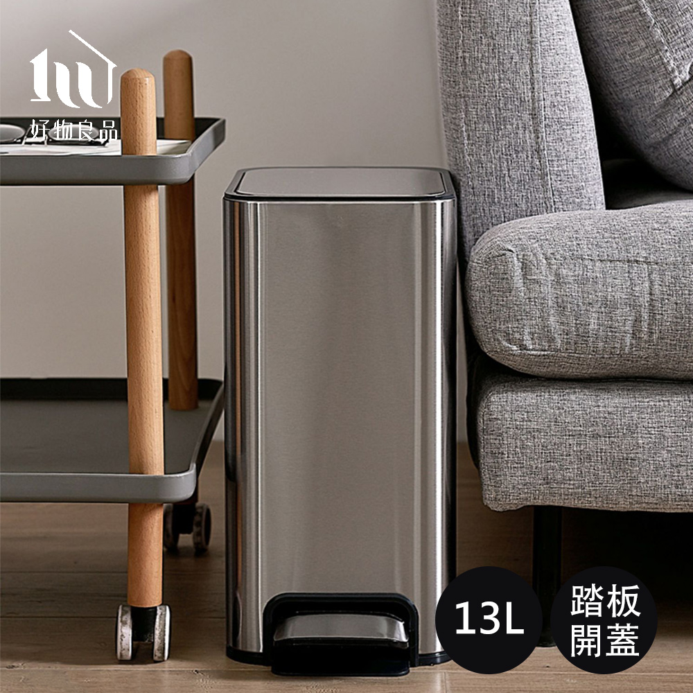 【好物良品】13L_個性俐落不鏽鋼腳踏板按壓式窄型夾縫垃圾桶