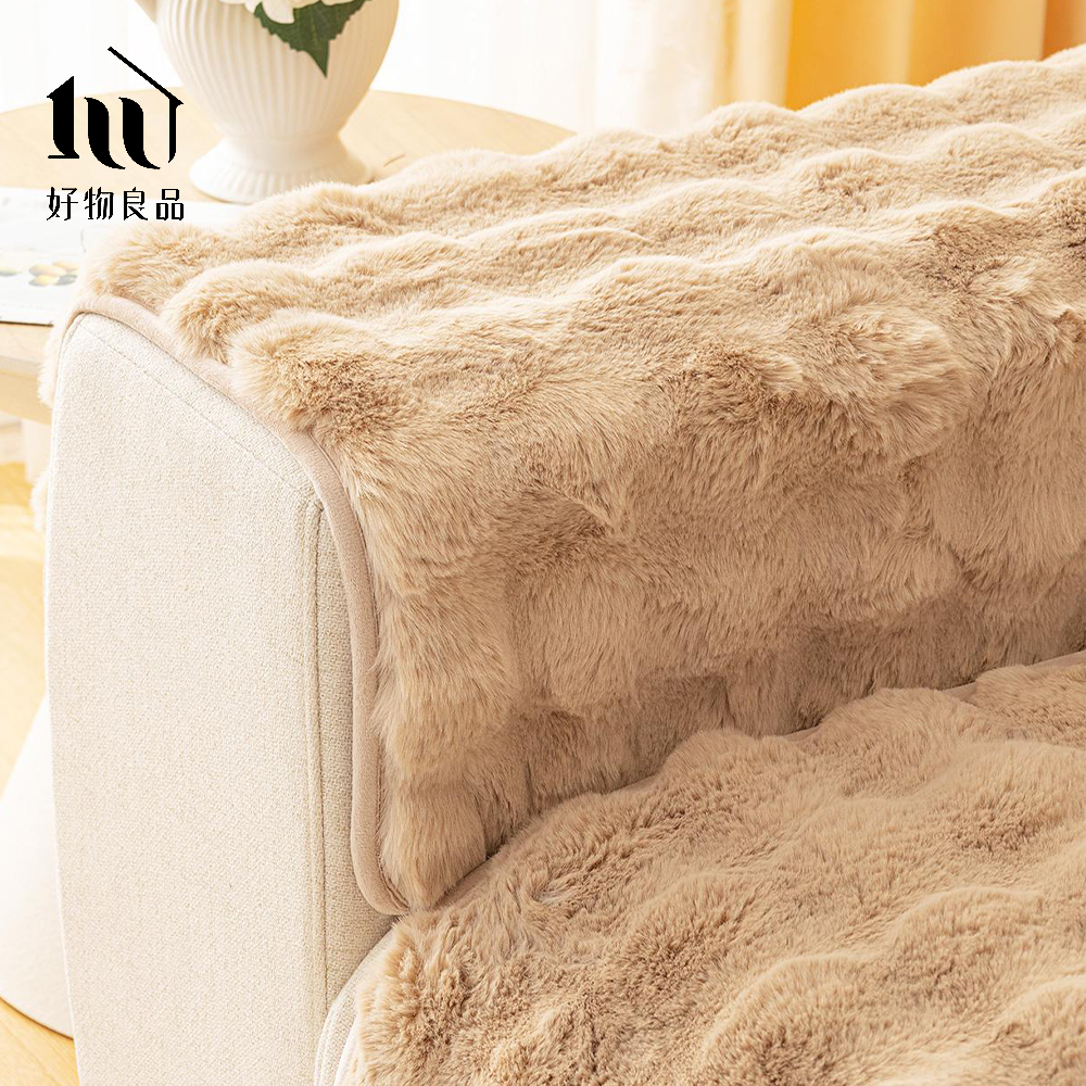 【好物良品】2入組_輕奢高密度毛絨保暖沙發墊 扶手巾2入(70*70) 淺咖啡