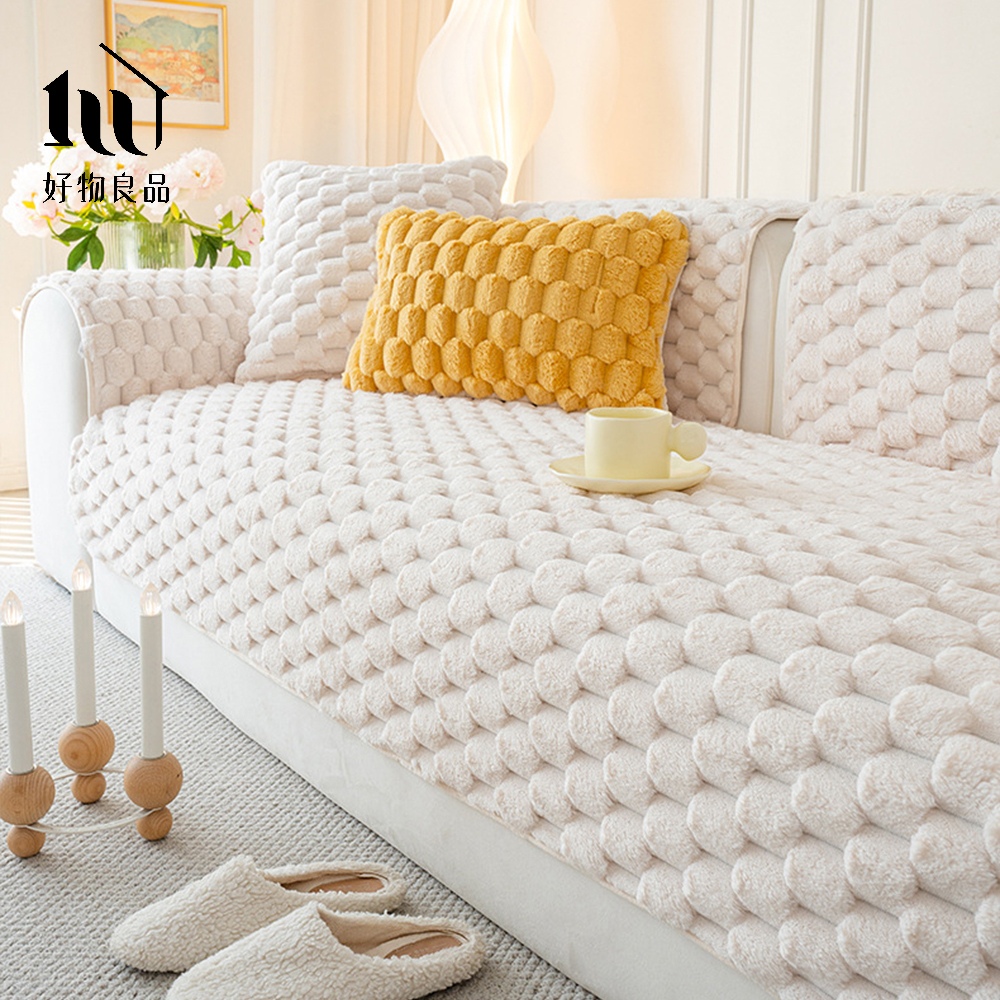 【好物良品】加大一人坐墊_可洗可烘加厚加大高密度仿兔毛沙發墊 90x90cm 奶霜白