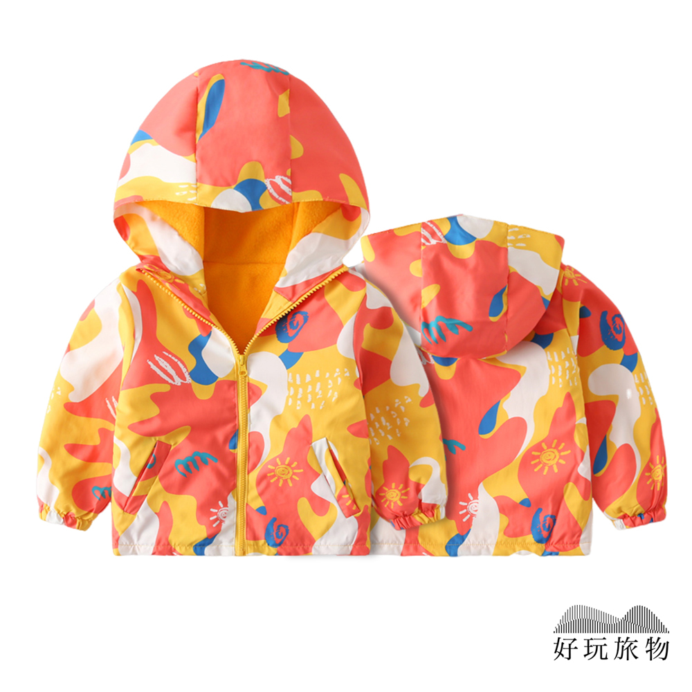 【好玩旅物】內刷毛防水防風兒童衝鋒外套 110碼 彩色陽光
