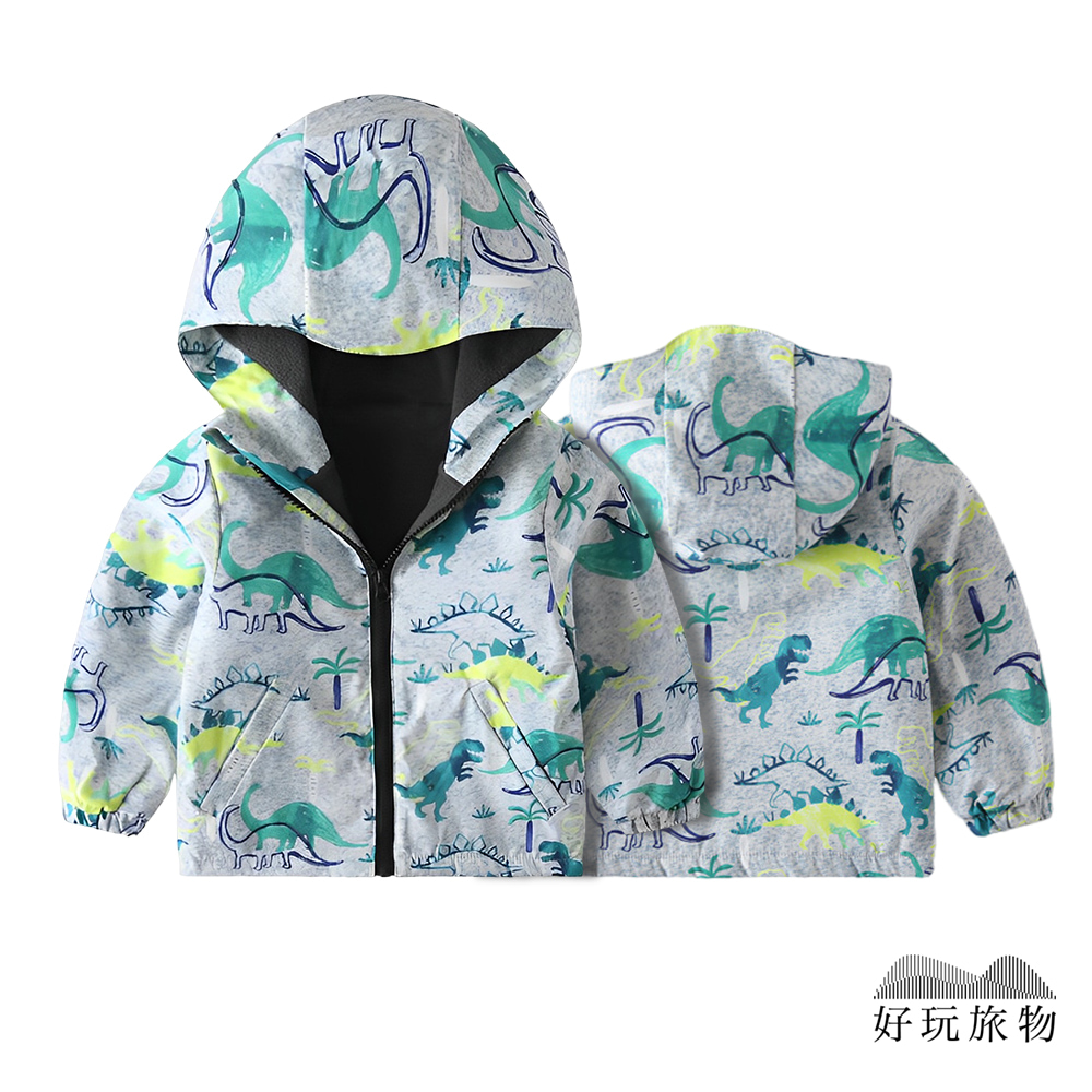 【好玩旅物】內刷毛防水防風兒童衝鋒外套 100碼 侏羅紀世界