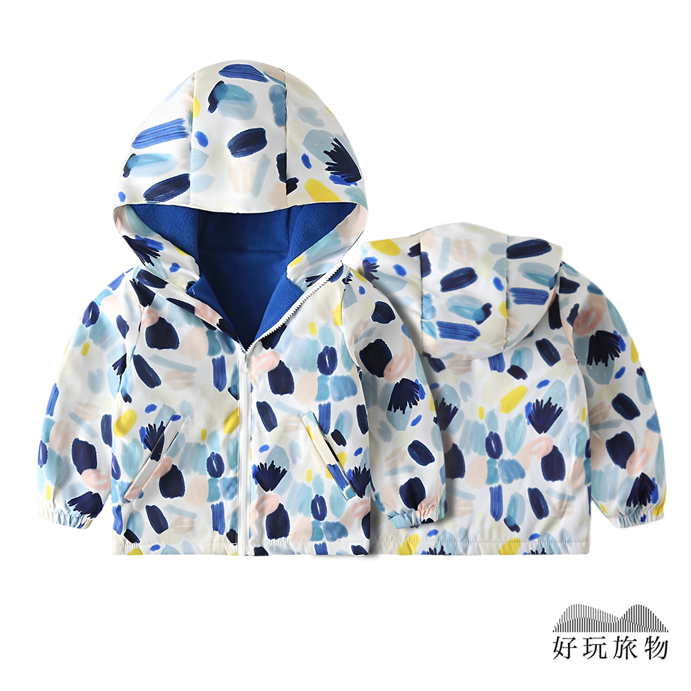 【好玩旅物】內刷毛防水防風兒童衝鋒外套 110碼 藝術塗鴉