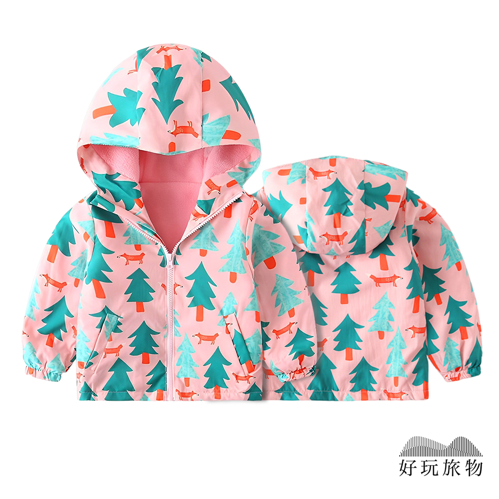 【好玩旅物】內刷毛防水防風兒童衝鋒外套 110碼 奇幻森林