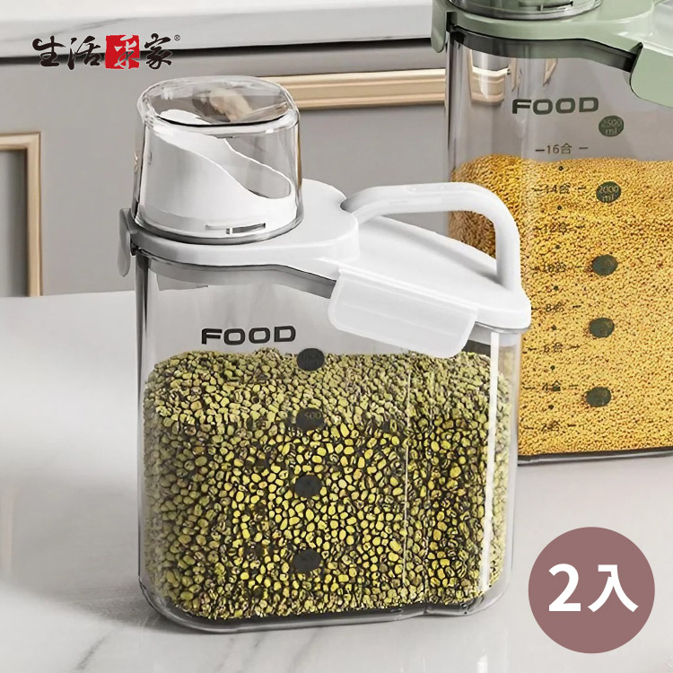 生活采家︱透明手提密封儲物罐 2kg 2入組 (三色隨機)