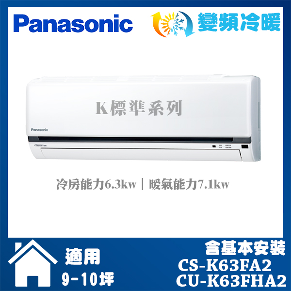 【Panasonic 國際牌】K標準系型8-9坪變頻冷暖分離式冷氣 (CS-K63FA2 CU-K63FHA2)