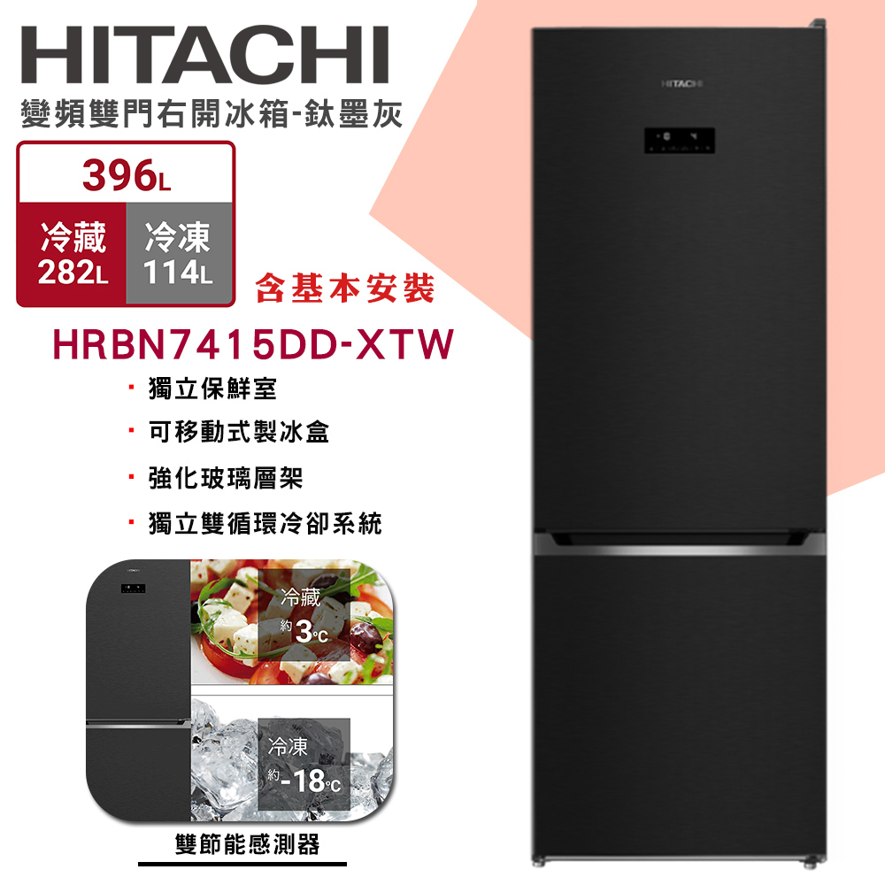 商品描述 | 【HITACHI日立】396L 2級變頻2門電冰箱 (HRBN7415DD) 鈦墨灰:-原產地:泰國-淨容量(公升):396-冰凍室容量(公升):114-冷藏室容量(公升):282-雪櫃門數目:2-款式:上置式 |