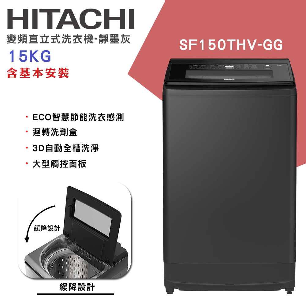 商品描述 | 【HITACHI日立】15KG 變頻直立式洗衣機 (SF150THV-GG):品牌:HITACHI日立型號:SF150THV產地:泰國洗衣容量:15kg洗衣槽類型:洗脫直立洗衣機顏:靜墨灰(GG)馬達:變頻馬 |