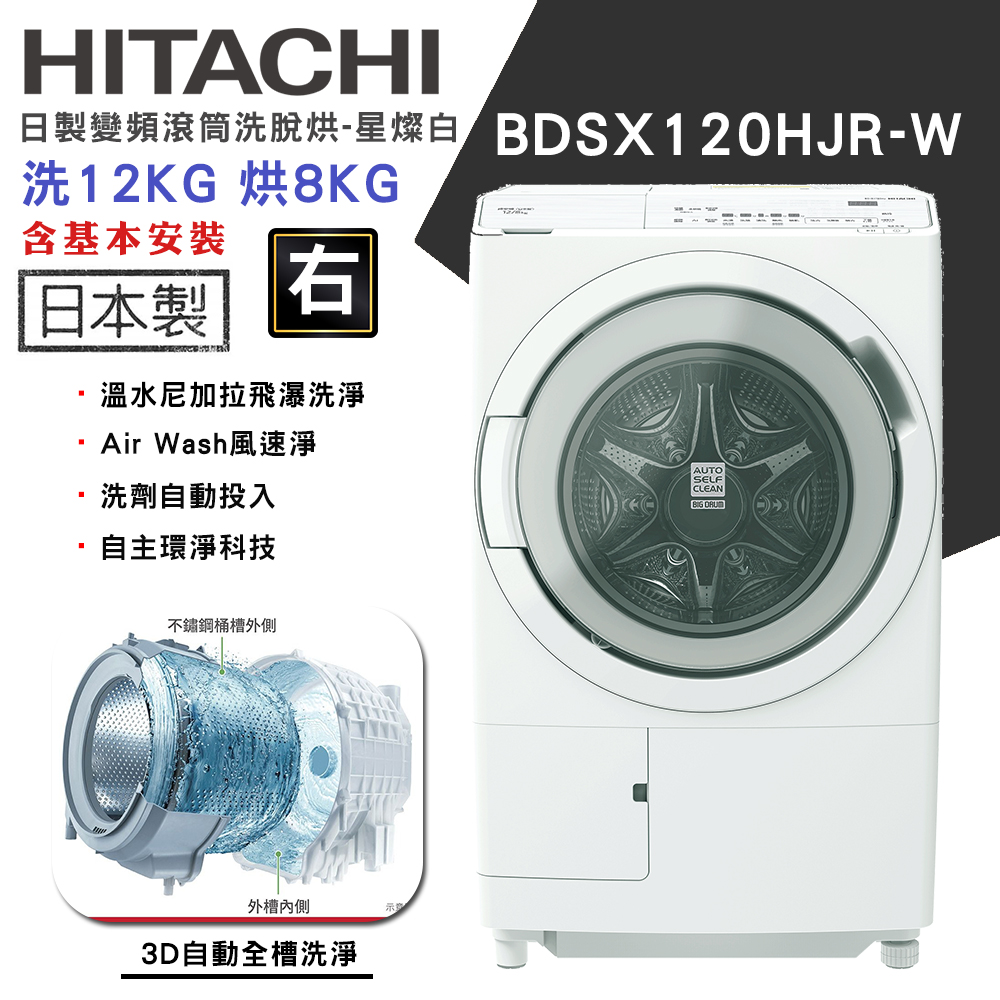 商品描述 | 【HITACHI日立】12KG 日製AI智能感測變頻右開滾筒洗脫烘洗衣機(BD-SX120HJR-W):商品名稱:【HITACHI日立】12KG日製AI智能感測變頻右開滾筒洗脫烘洗衣機(BD-SX120HJR-W)商 |