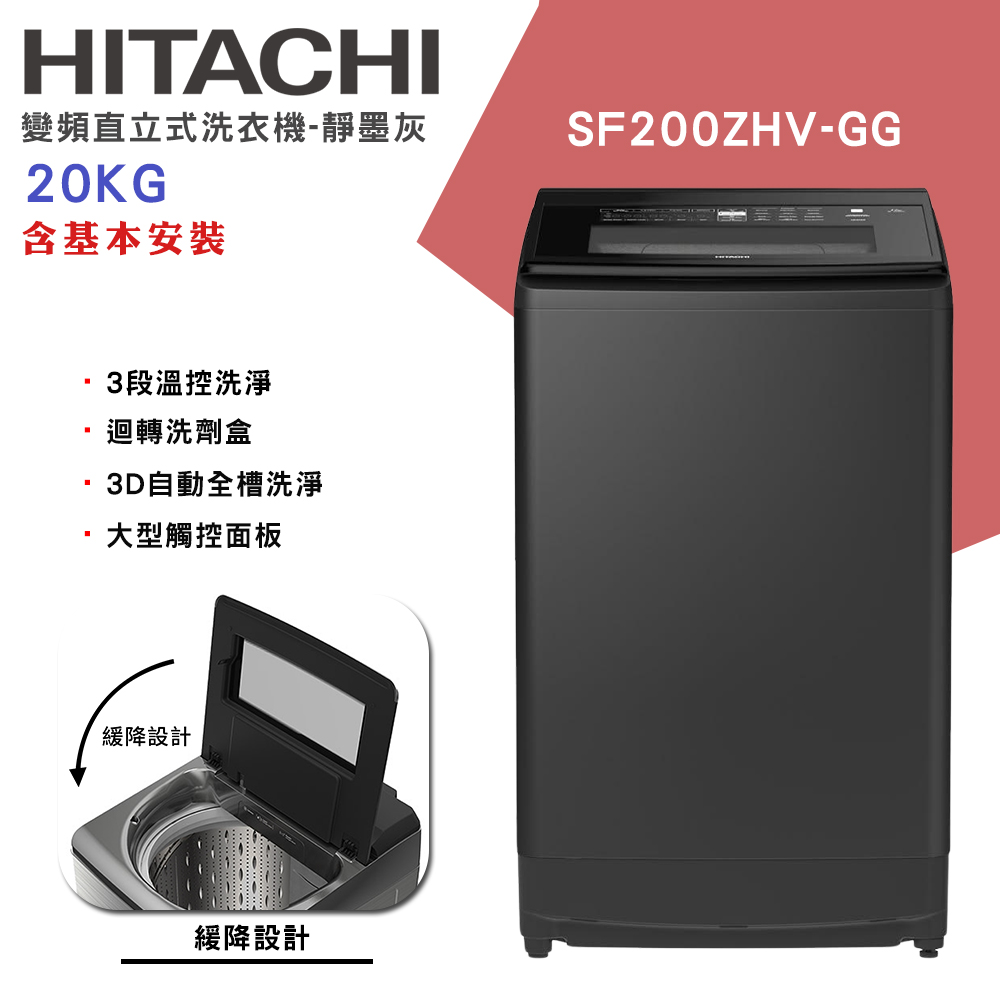 簡介 / | 【HITACHI日立】20KG 變頻直立式洗衣機 (SF200ZHV):商品名稱:【HITACHI日立】20KG三段溫控變頻直立式洗衣機(SF200ZHV-GG)商品型號:SF200ZHV商品顏色:靜墨灰 (GG)洗水 |