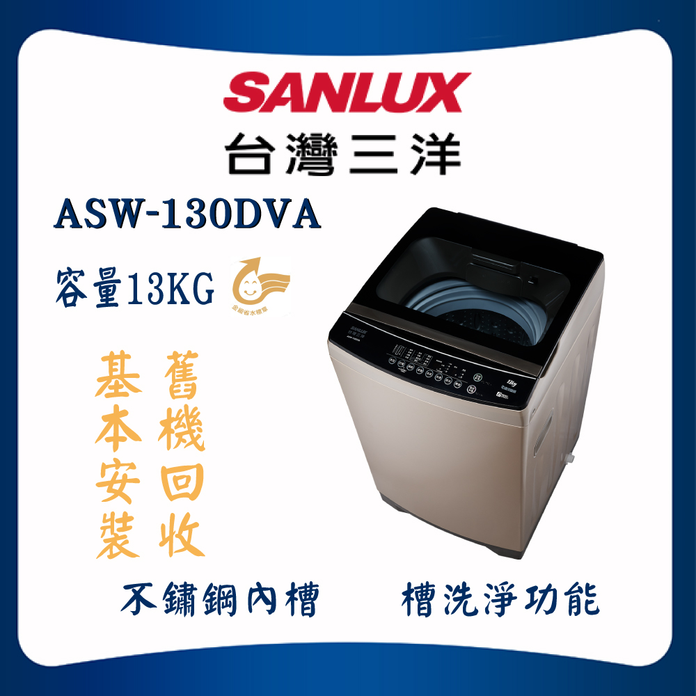 【SANLUX 台灣三洋】13KG直立式洗衣機(ASW-130DVA)