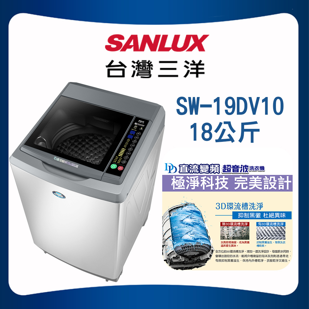 【SANLUX 台灣三洋】18Kg直流變頻超音波洗衣機(SW-19DV10)