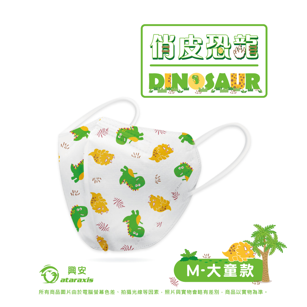 簡介 / 【興安】兒童3D立體醫用口罩 俏皮恐龍大童 50入 1盒:1.『印花層』=非織物不織布,無可遷移性螢光劑、無偶氮染料2.『表面層』=PP不織布,潑水、防止口沫、霧氣滲入3.『中間