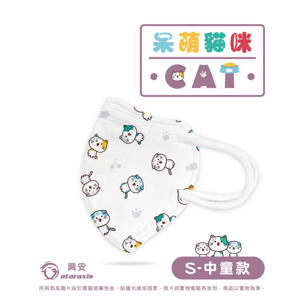 商品名 / 【興安】兒童3D立體醫用口罩 呆萌貓咪中童 50入 1盒