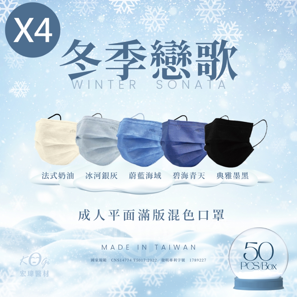 【宏瑋】成人滿版混色醫療口罩 冬季戀歌 50入 4盒