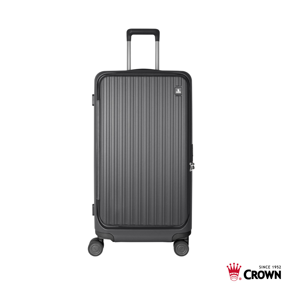 【CROWN】BOXY 28吋 前開式防盜拉鍊 鋁框胖胖箱 鐵灰