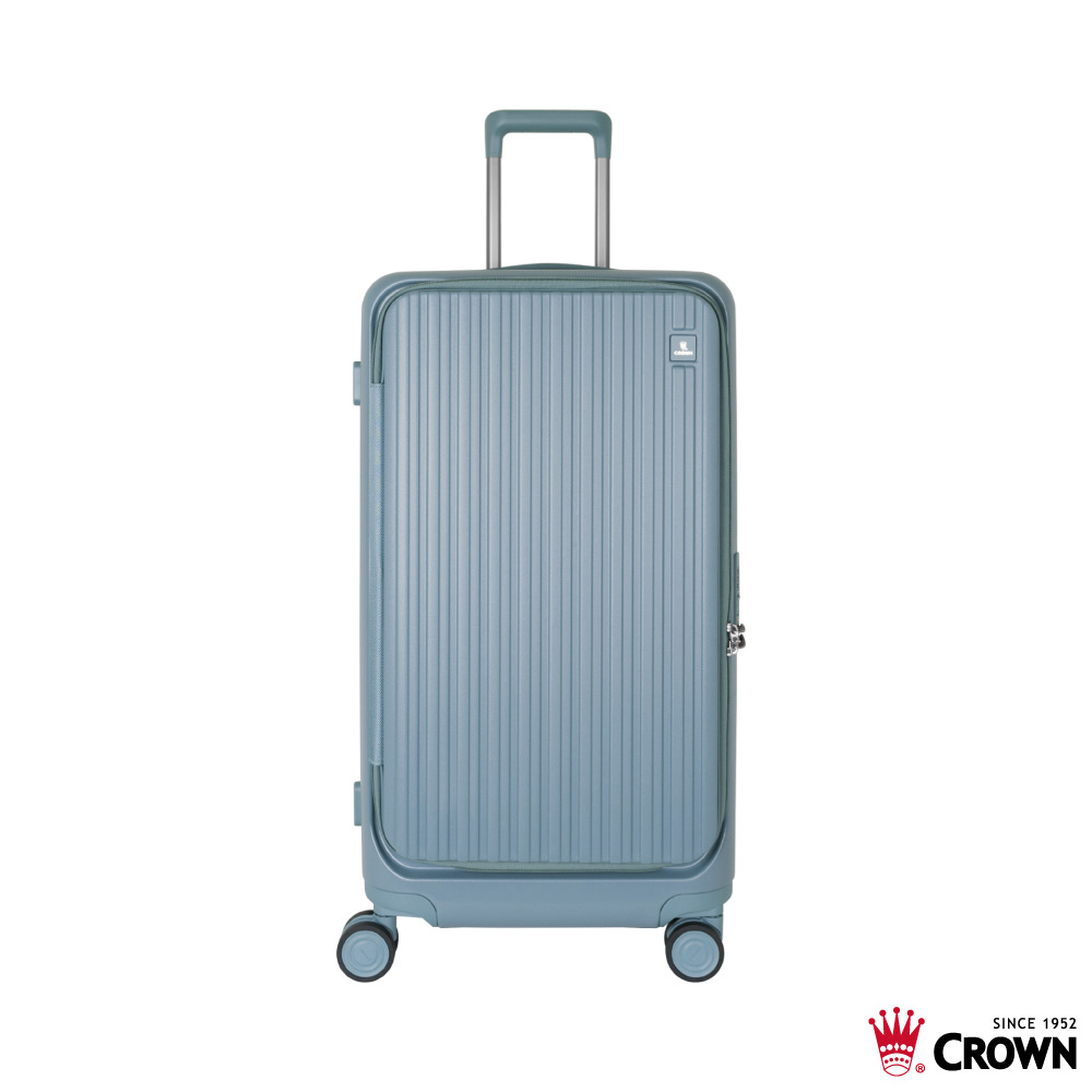 【CROWN】BOXY 28吋 前開式防盜拉鍊 鋁框胖胖箱 鼠草綠