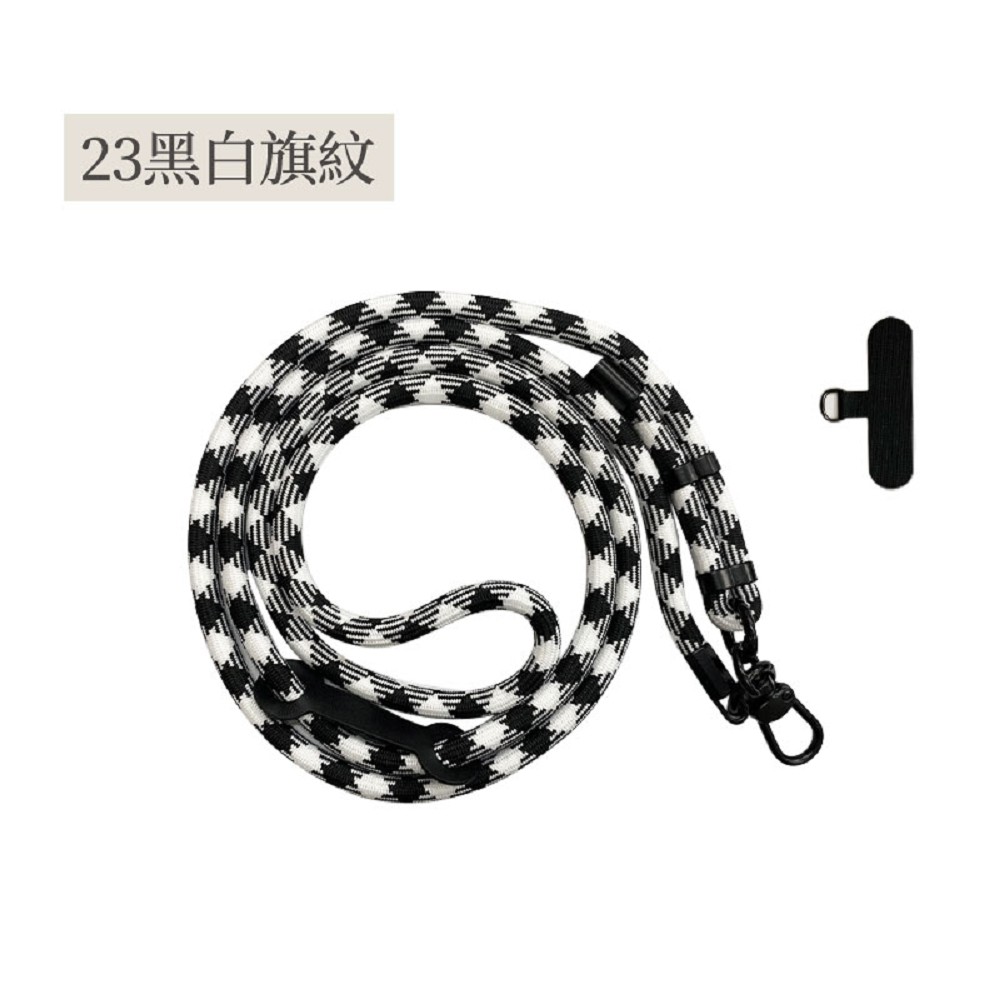 FJ日系可調節夾片免打孔斜背手機掛繩SL3(Apple 安卓通用 斜背吊繩 掛繩 頸掛繩 背帶) 23黑白旗紋