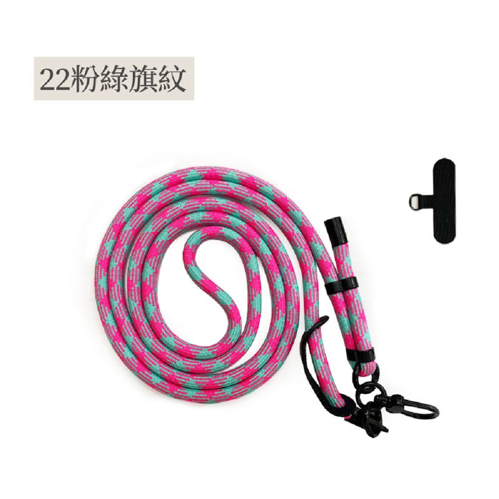 商品名 / | FJ日系可調節夾片免打孔斜背手機掛繩SL3(Apple 安卓通用 斜背吊繩 掛繩 頸掛繩 背帶) 22粉綠旗紋 |