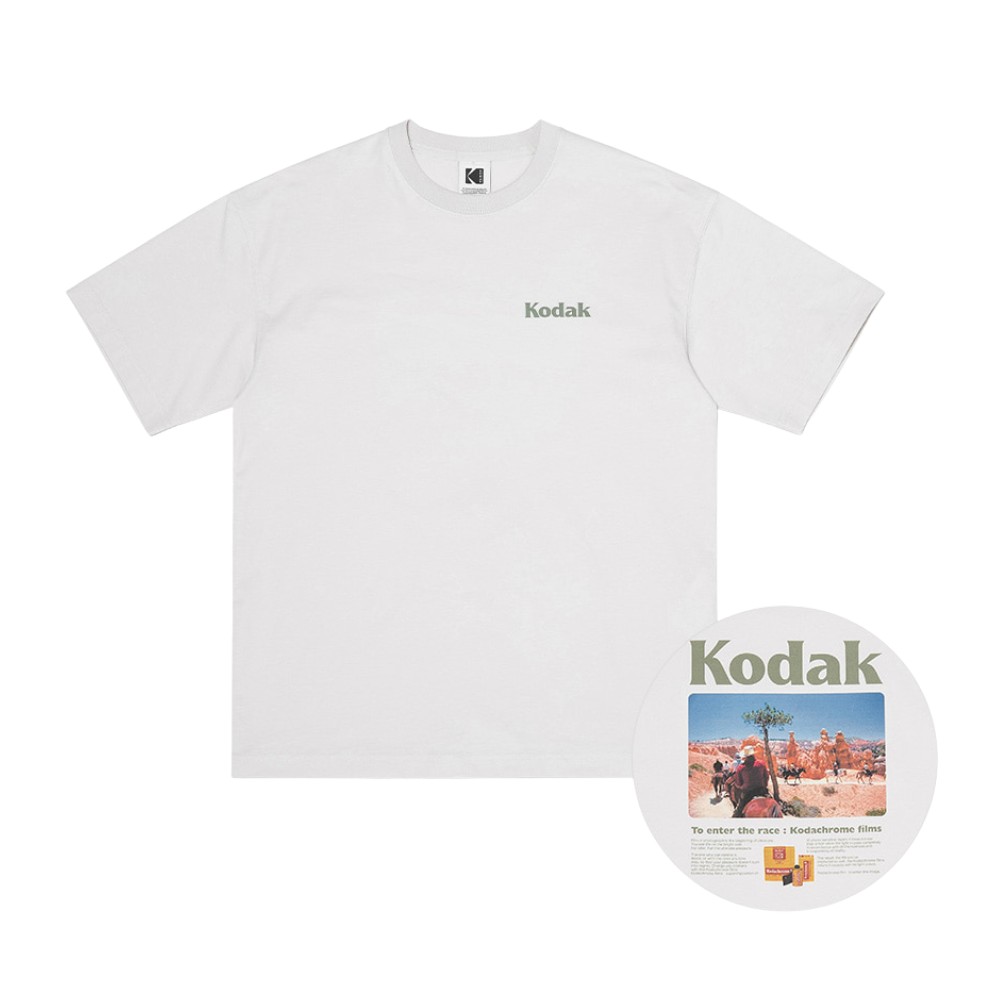 韓國 KODAK 自然風景印花短袖T恤 淺灰色LIGHT GREY L
