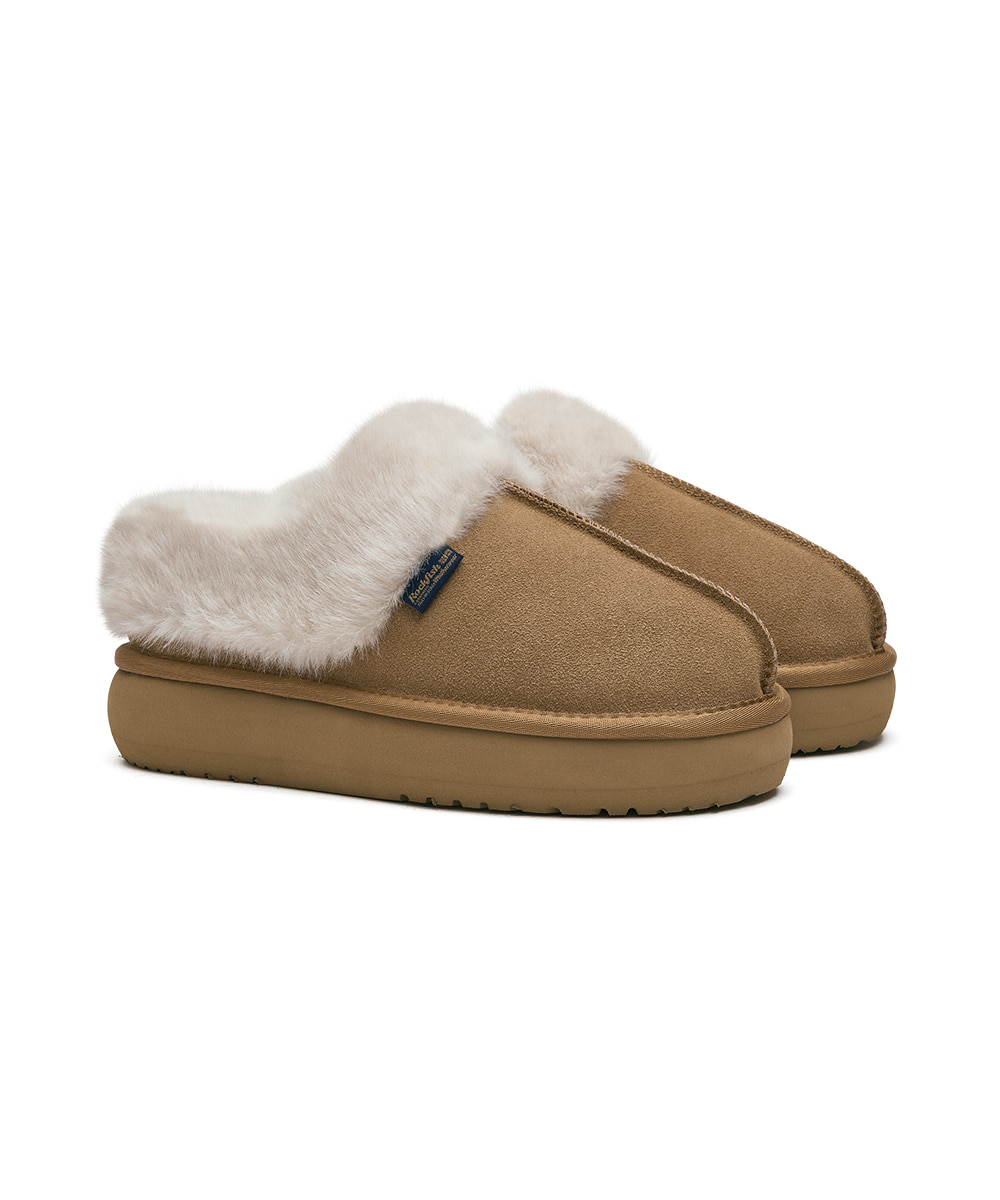 韓國 Rockfish Weatherwear CLOUDY FLATFORM FUR MULES 厚底絨毛保暖穆勒鞋 栗棕色 CHESTNUT 預購 25 cm
