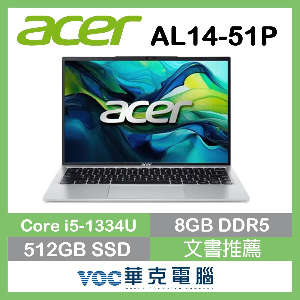 acer 宏碁Aspire Lite 14 AL14-51P-5975 14吋 文書筆電 銀(i5-1334U 8G 512G SSD WUXGA 14 W11)