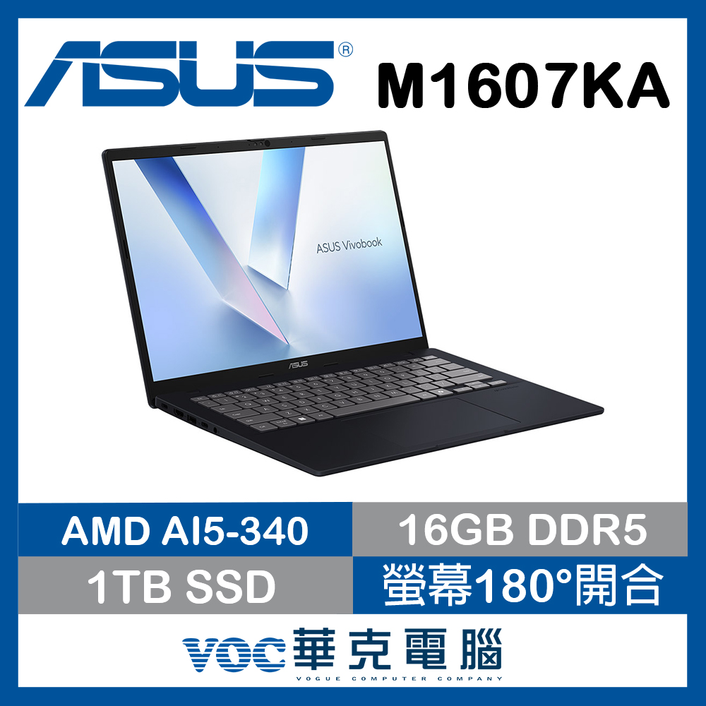 ASUS 華碩VivoBook M1607KA-0031B340H 藍(AI5-340 16G 1TB SSD WUXGA 16 W11)