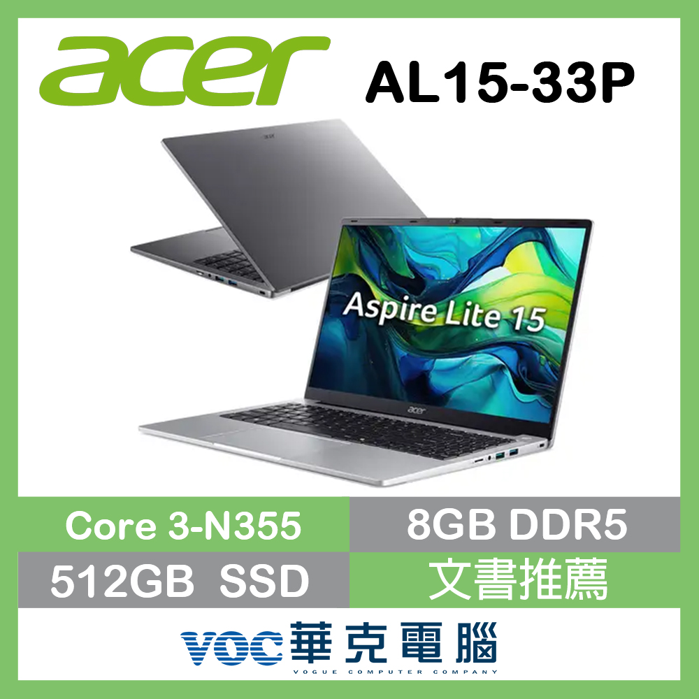 acer 宏碁Aspire Lite 15 AL15-33P-31JK 15.6吋 文書筆電 銀(C3-N355 8G 512G SSD W11)