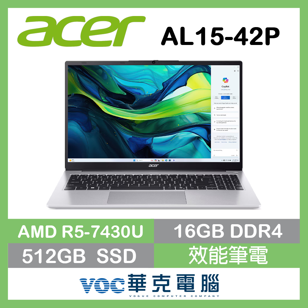 商品名 / | acer 宏碁Aspire AL15-42P-R5X3 銀(R5-7430U 16G 512G SSD W11 15.6FHD)文書筆電 |