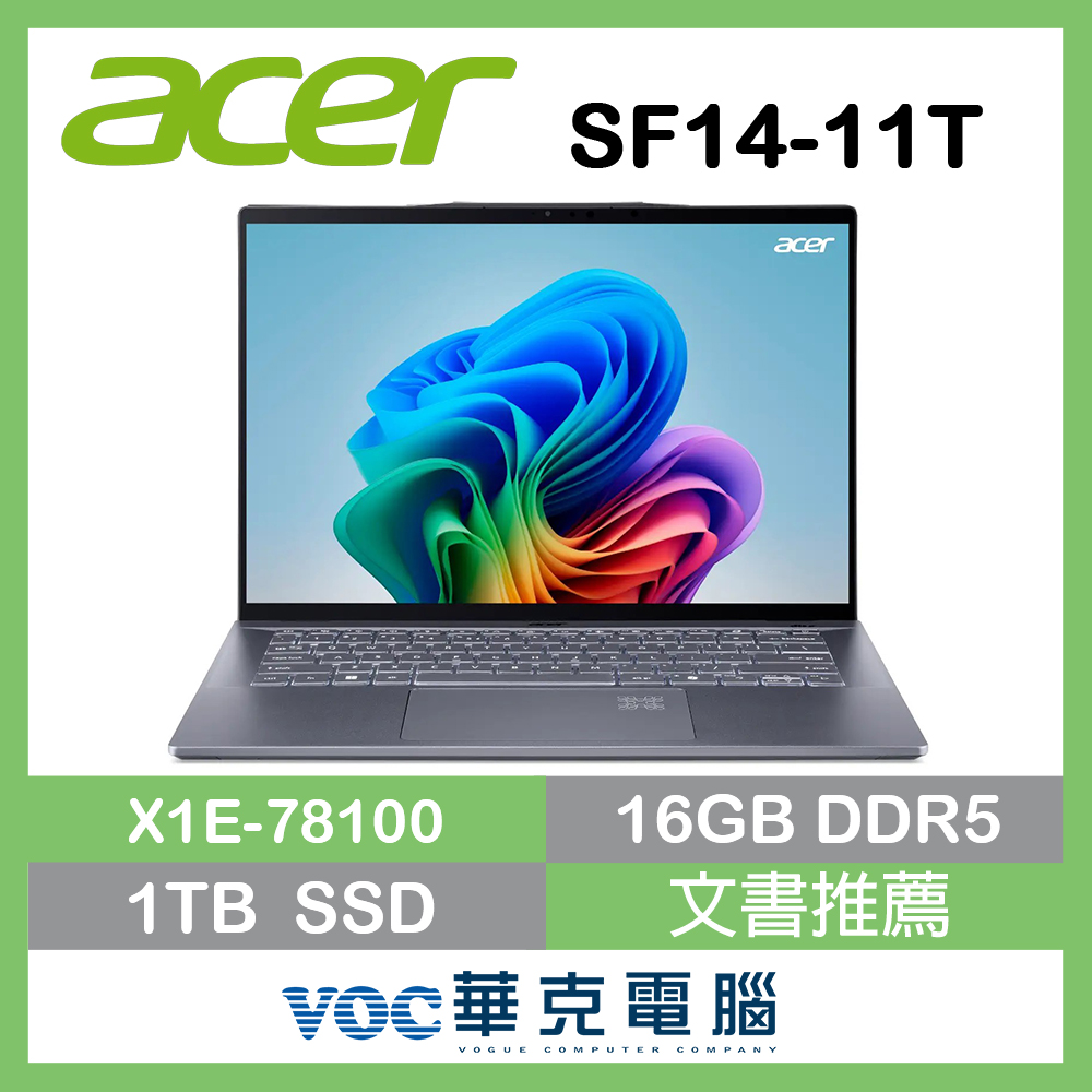 商品名 / | acer 宏碁Swift 14 AI SF14-11T-X5F7 灰(Snapdragon X Elite X1E 78 100 16G 1TB WQXGA 14) |