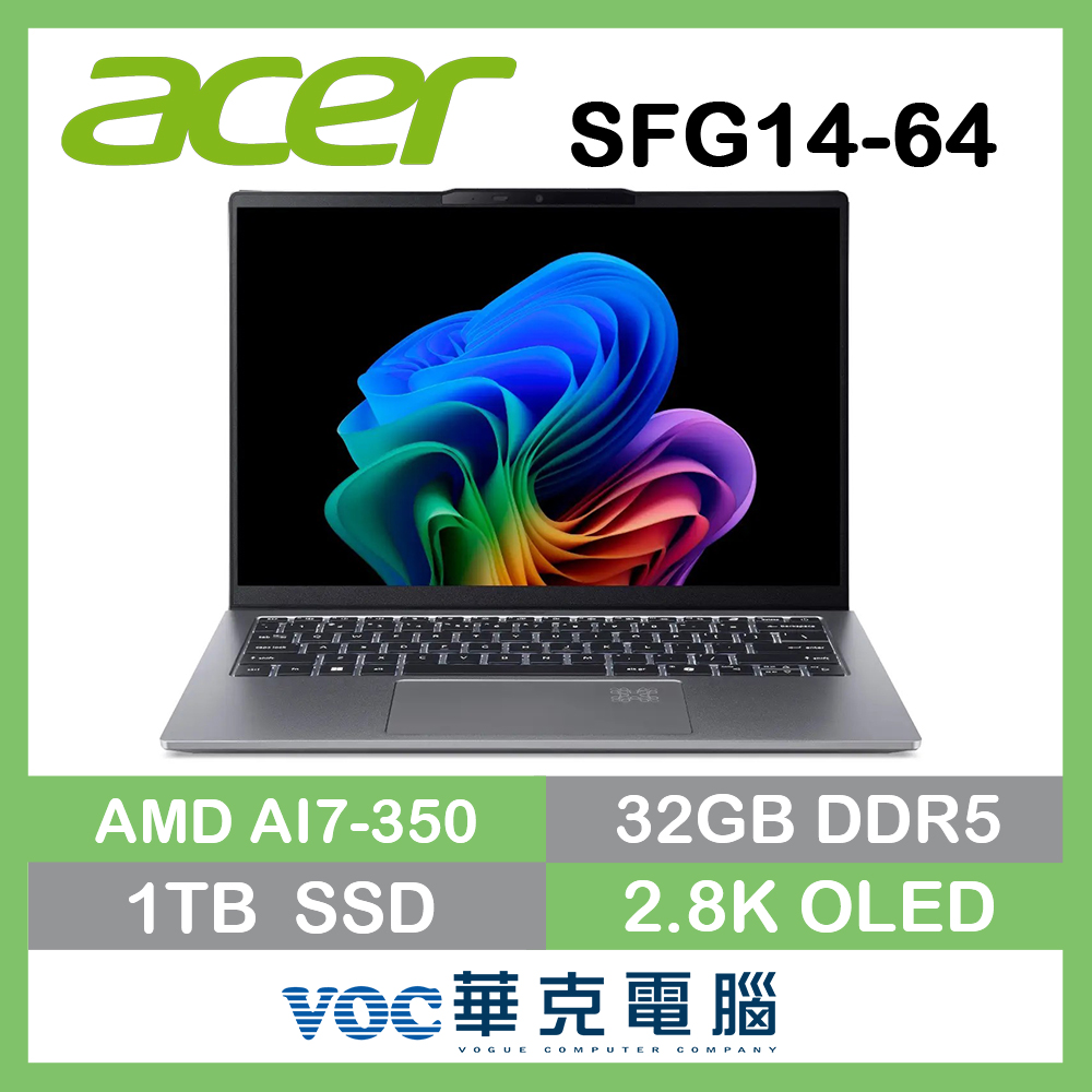 商品名 / | acer 宏碁Swift GO 14 SFG14-64-R44M 14吋 文書筆電 銀(R7-350 32G 1TB SSD W11 OLED 14) |