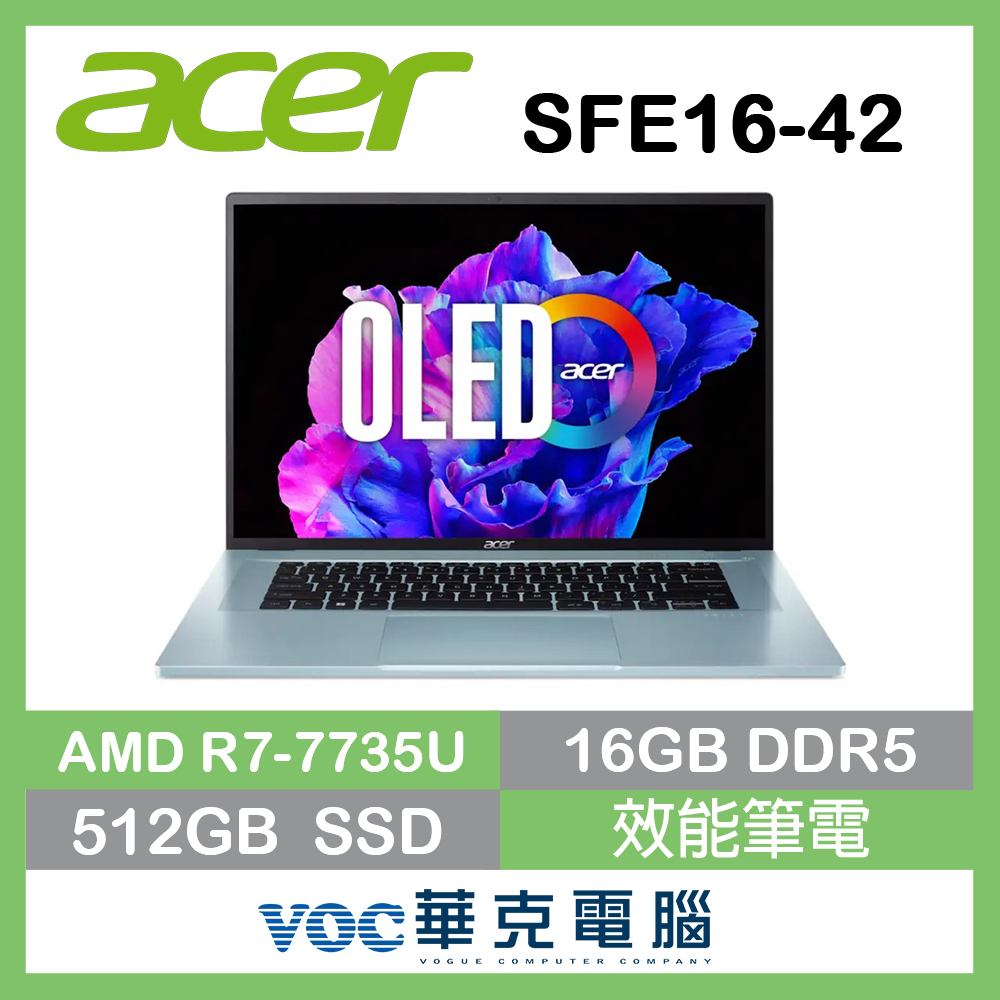 簡介 / | acer 宏碁 Swift Edge SFE16-42-R260 銀(R7-7735U 16G 512G PCIe SSD OLED 16")效能筆電:ACERSwiftEdgeSFE16-42-R260極光銀詳細規格表作業系統64BitsWindows11Home處理器A |