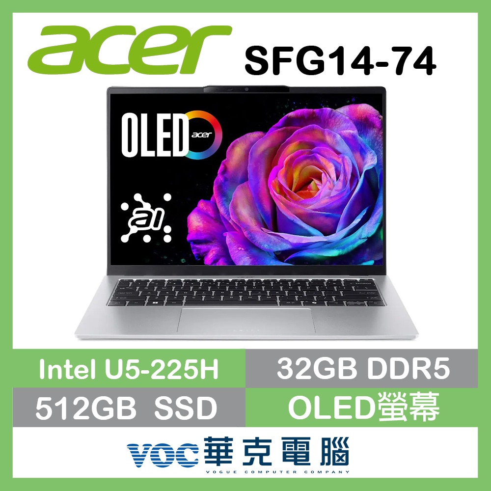 acer 宏碁Swift Go 14 SFG14-74-55TY 14吋 AI筆電 銀(Ultra 5 225H 32G 512G SSD OLED W11)